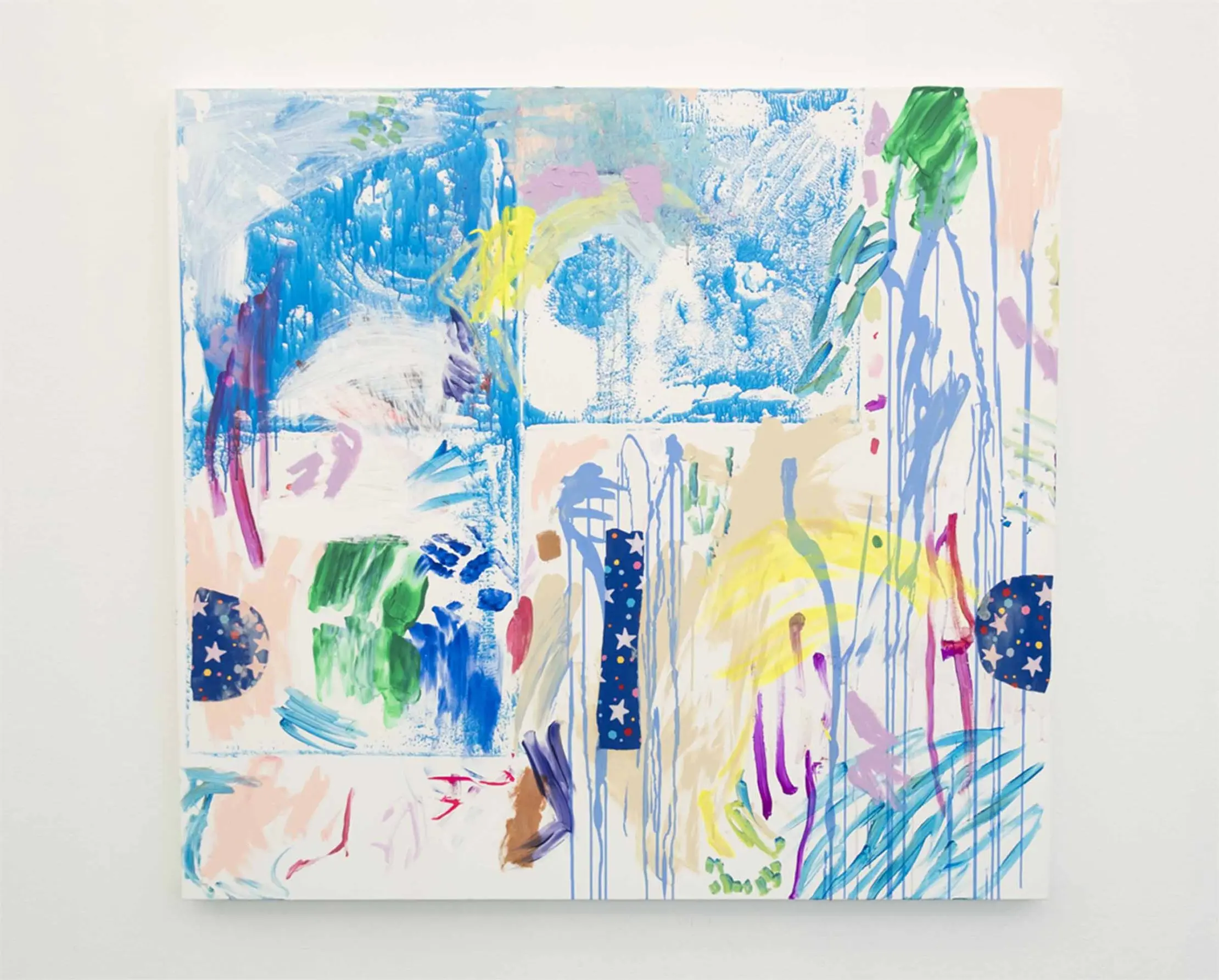 The body is also centrally present in Hannah Beerman’s paintings, with her hands, fingers, arms and anything at hand used as tools of applying paint, seismographically translating the artist’s lived experience. The studio is set up as a space of free experimentation, a sanctum teeming with all kinds of paints, materials and objects, which have found their way into the artist’s life.
