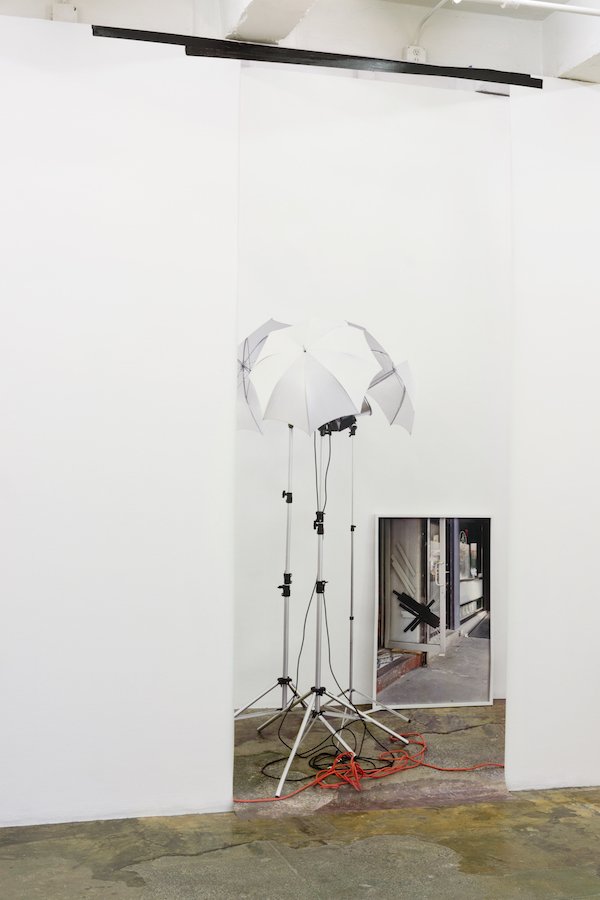 Bearing the same name, Sonntag’s exhibition itself ultimately shares this provisional appeal. Working at the gallery for the show during August, Sonntag photographed a range of whimsical setups, using objects at hand in the gallery to display a selection of images from her series. The results were transferred 1:1 to photographic wallpapers, which — displayed with corresponding objects — reenter the gallery’s space.