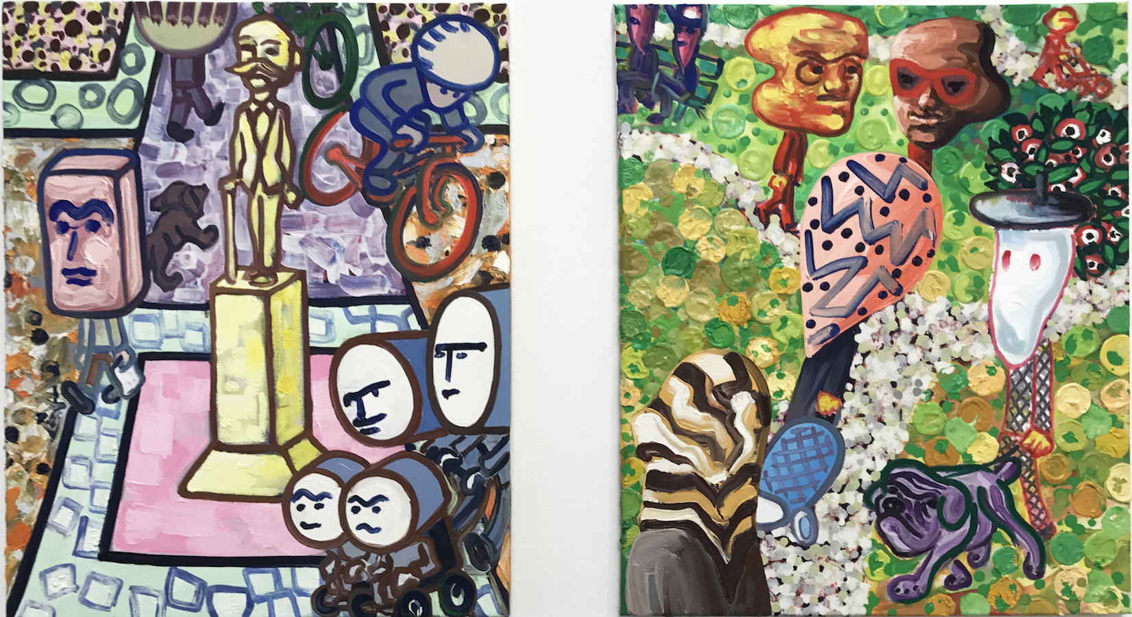 Sch-D-Platz, 2011 & F-Hain, 2010. Oil on canvas, each 19.5 x 24 in.">
